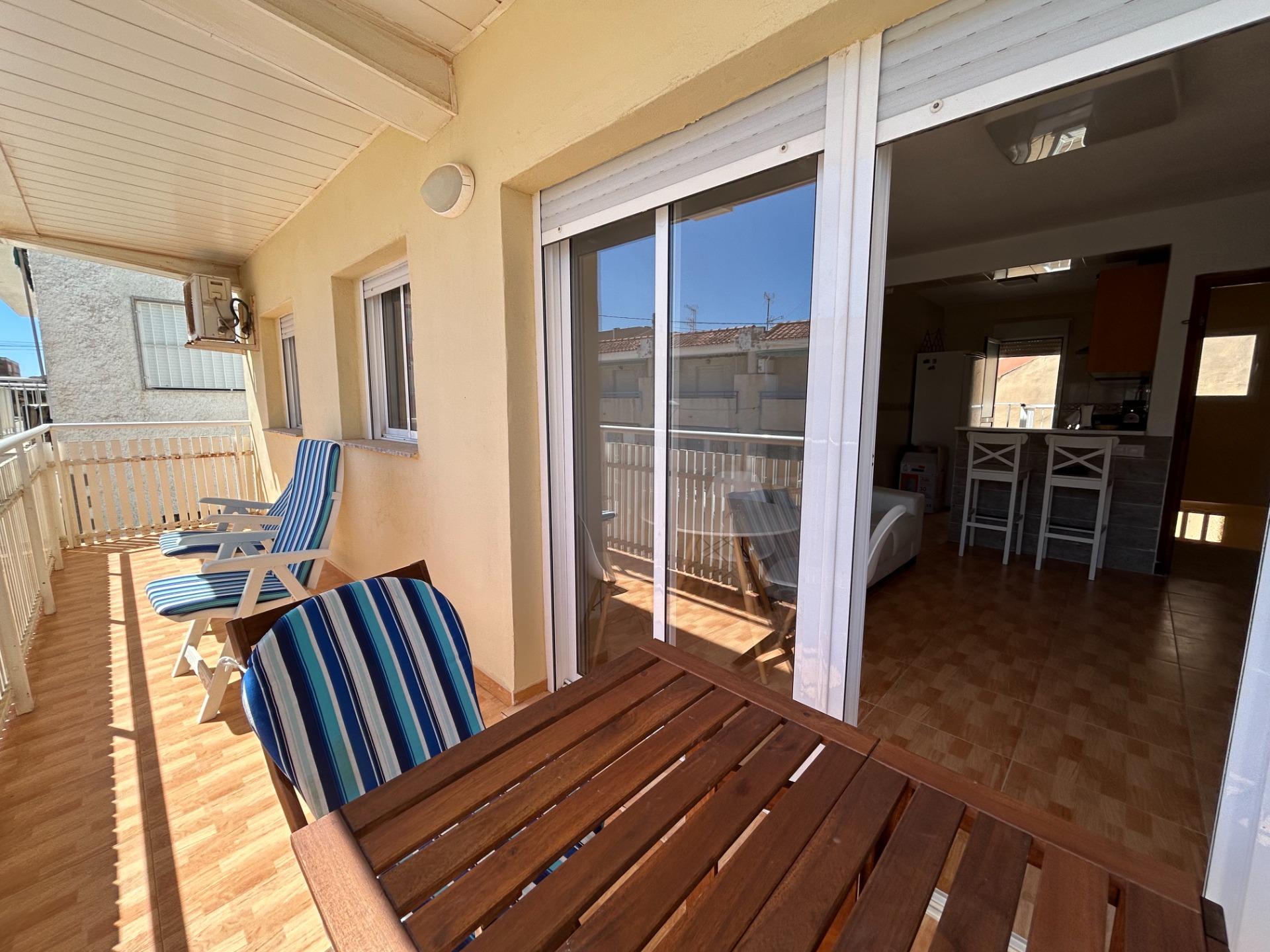 ¡Vive a solo 100 metros de la playa! 🌊~~Este encantador apartamento es el lugar perfecto tanto para residir todo el año como para disfrutar de unas vacaciones inolvidables.~Con 117 m² construidos y 85 m² útiles, ofrece un hogar cómodo y acogedor con tres luminosos dormitorios, un amplio salón-comedor ideal para relajarte, y un baño completo.~La cocina, completamente reformada, está lista para que prepares tus mejores recetas. Además, podrás deleitarte con una hermosa terraza, ideal para disfrutar de atardeceres o de tardes de café con vistas.~~Ubicado en una primera planta y con orientación sur, el apartamento se encuentra en un estado impecable. ~Su excelente ubicación te ofrece proximidad a todos los servicios esenciales y tiene acceso directo a las principales autovías hacia Cartagena y La Manga.~Existe la posibilidad de adquirir una plaza parking en edificio cercano por 7.000 euros.~~Las conexiones con los aeropuertos de Corvera y Alicante son excepcionales, ¡perfecto para disfrutar de tu nuevo hogar sin complicaciones!~~No dejes pasar esta oportunidad única. ¡Te esperamos para enseñarte tu futuro hogar junto al mar!~