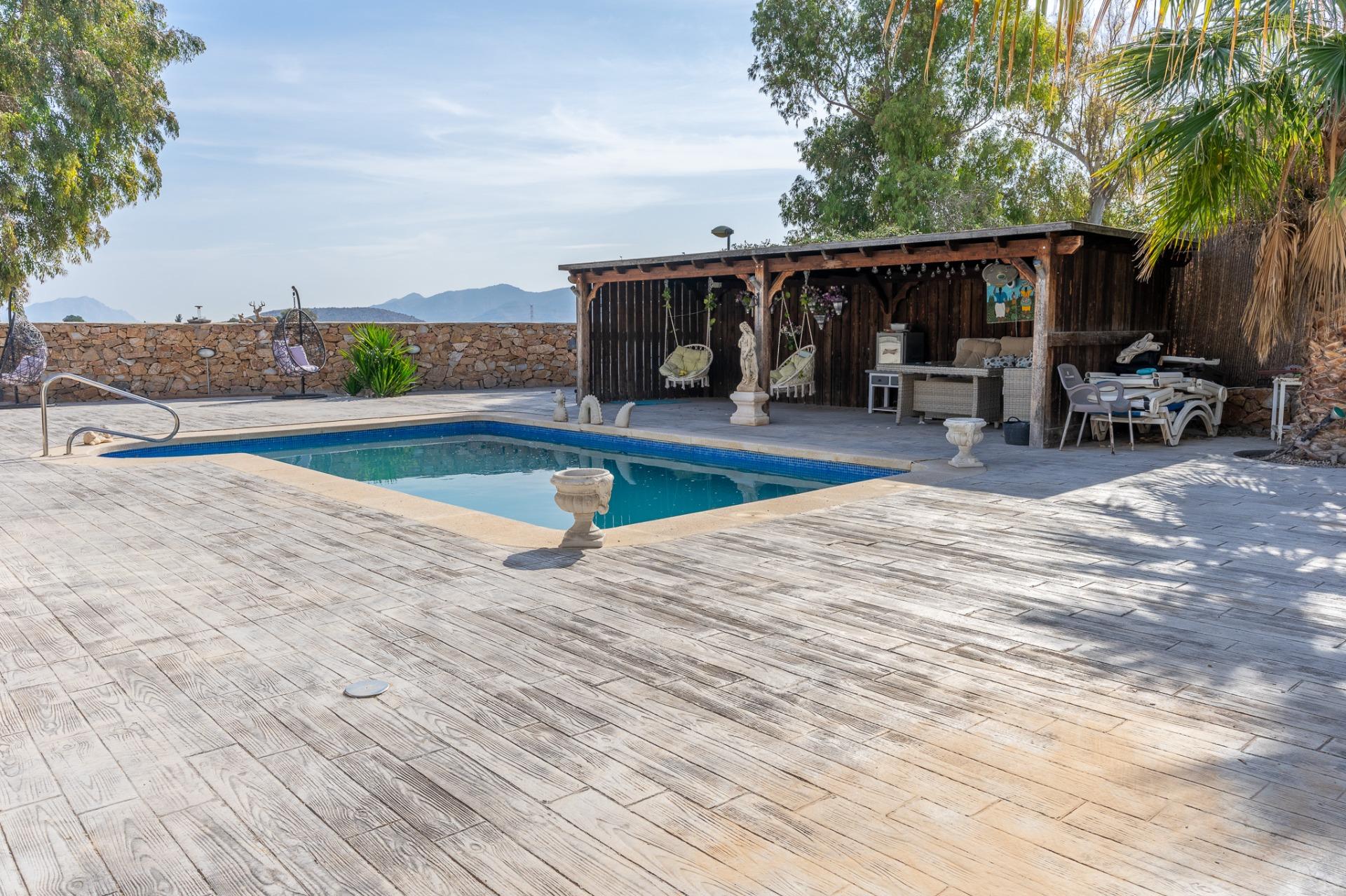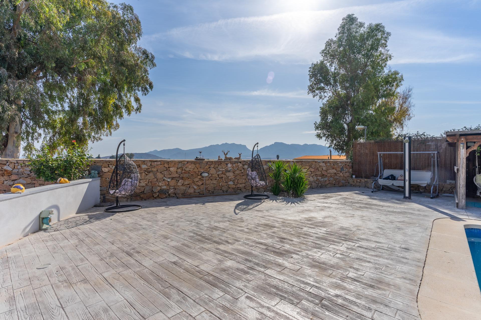 Se vende chalet independiente en El Reloj, Fortuna~~Vivir en un chalet independiente con todos los servicios, a tan solo 15 minutos de Murcia, es posible con esta magnífica propiedad ubicada en la zona de El Reloj, Fortuna.~~La vivienda cuenta con dos amplios dormitorios dobles con armarios empotrados y dos baños completos. Dispone de una cocina espaciosa y un salón-comedor muy luminoso, con chimenea y grandes ventanales que conectan con el exterior.~~En el exterior, podrás disfrutar de una zona ajardinada con piscina privada y un acogedor porche, ideal para relajarse y compartir momentos especiales.~~Un entorno tranquilo, con excelentes conexiones y todas las comodidades. No dejes escapar esta oportunidad.~~Esta vivienda está siendo comercializada en MULTIEXCLUSIVA por nuestra Agencia Inmobiliaria.~La oferta está sujeta a cambios de precio o retirada del mercado sin previo aviso por ser nosotros simplemente intermediarios y no propietarios. Este anuncio en su conjunto, incluyendo textos, fotos, imágenes o cualquier otro contenido de este, no es vinculante dado que la información es ofrecida por terceros y puede contener errores. Se muestra a título informativo y no contractual. El mobiliario, los electrodomésticos y los vehículos que puedan aparecer en las fotografías aquí publicadas no se encuentran incluidos en el precio de venta, aun así y llegado el momento de adquisición se podrá acordar entre las partes si se quedara dentro del inmueble algún mobiliario y así se verá reflejado en el contrato de compraventa entre las partes.~El precio no incluye lo siguiente: gestión de servicios de la agencia inmobiliaria, ITP y otros gastos de compraventa (Notaría, Gestoría y Registro). Si nos lo solicitan, estaremos encantados de hacerles un presupuesto completo adaptado a sus características personales.~Por mandato expreso del propietario, al ser miembros de varias MLS comercializamos este inmueble en exclusiva, lo que le garantiza el acceso a toda la información, a un servicio de calidad, un trato fácil y sencillo y sin interferencias de terceros. Por este motivo, se ruega no molestar al propietario, a los ocupantes de la propiedad o a los vecinos. Muchas gracias por su comprensión.~Si es usted agente inmobiliario profesional, no dude en contactar con nosotros para colaborar en la venta~~