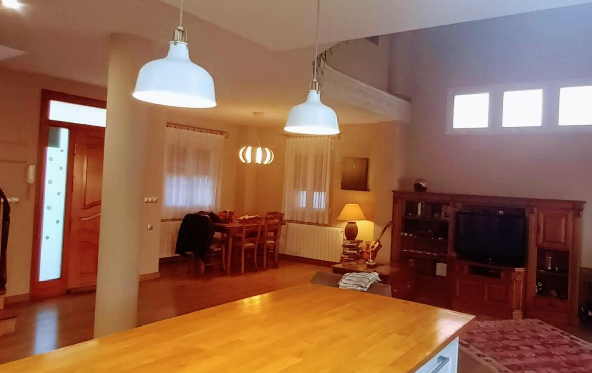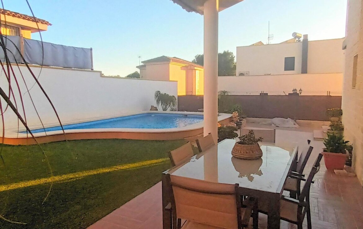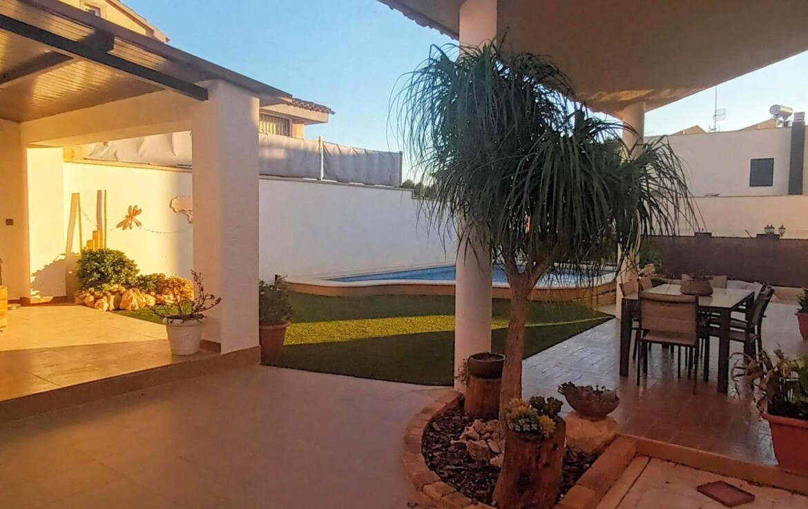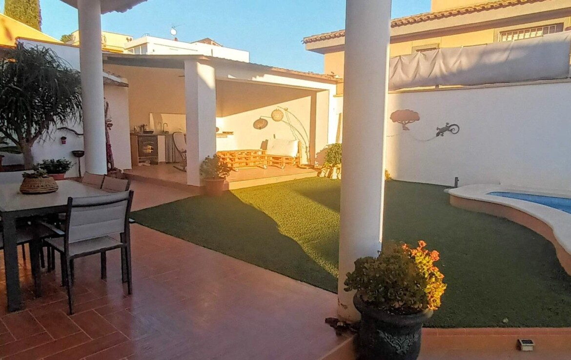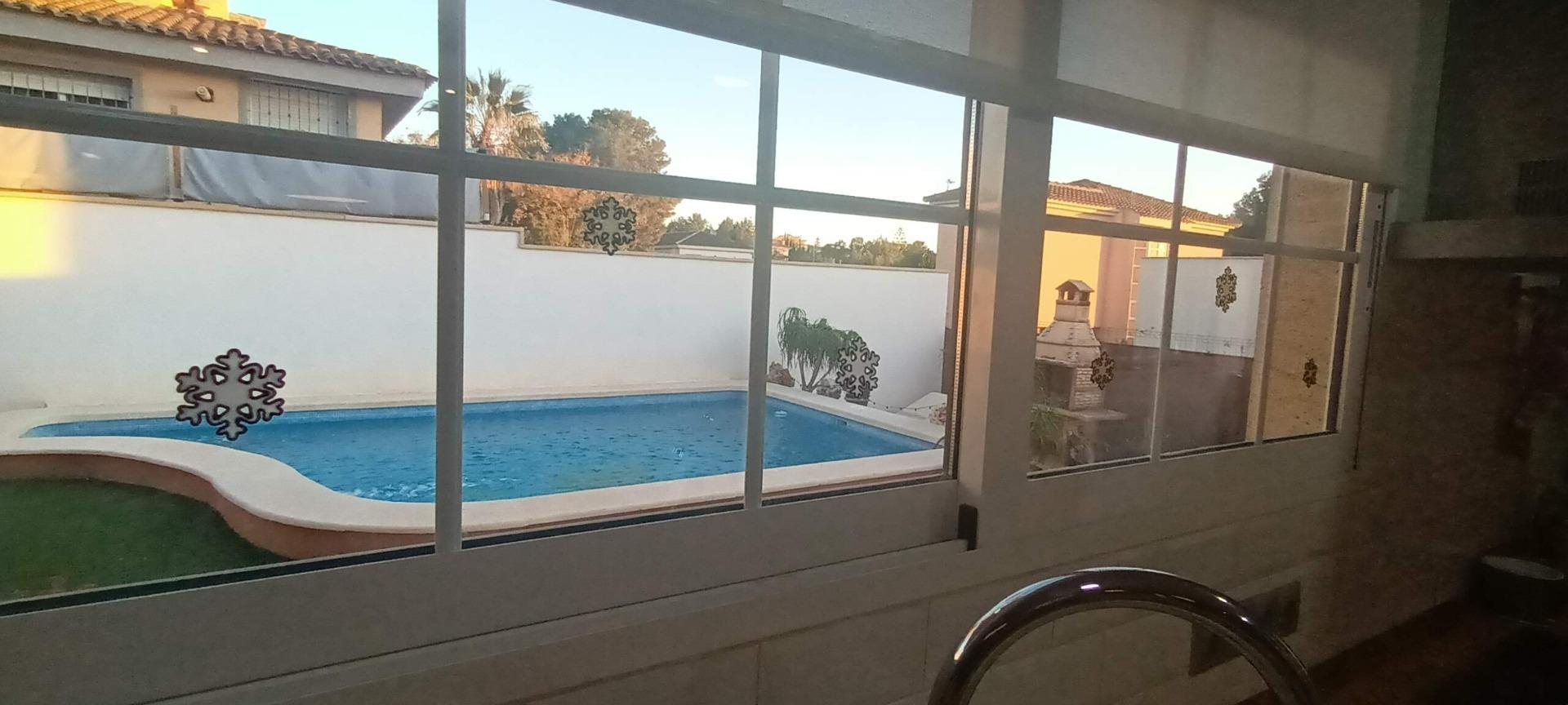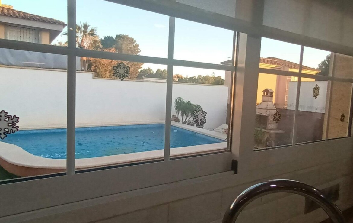 Chalet individual en la mejor zona de La Alcayna !! Cuenta con 241 m. de superficie construida distribuida en 2 plantas las siguientes estancias: salón comedor en 2 alturas con chimenea francesa, cocina totalmente equipada tipo americana, 4 habitaciones dobles, 3 baños, trastero y garaje para vehículo mediano con un altillo de gran capacidad de almacenamiento. A nivel de parcela dispone de una superficie techada de aparcamiento para dos coches.~~En la planta primera nos encontramos con un amplio salón comedor a doble altura con chimenea integrada en el mismo y cocina abierta a salón, un dormitorio doble, pudiendo hacer la función de principal, un baño. Planta superior, tres dormitorios y un baño. Excelente ubicación junto a todos los servicios, colegios.~La casa está dotada de todo tipo de extras tales como: aire acondicionado, armarios empotrados, barbacoa, calefacción central con caldera individual, despensa, pérgola con cocina de verano y una vonita piscina privada.~En la urbanización encontrará muy a la mano servicios como linea regurla de autobuses, centros comerciales, centro médico, colegios, supermercados, vigilancia 24h, zonas infantiles, etc…~~Llámenos para conocer más detalles !!~~~
