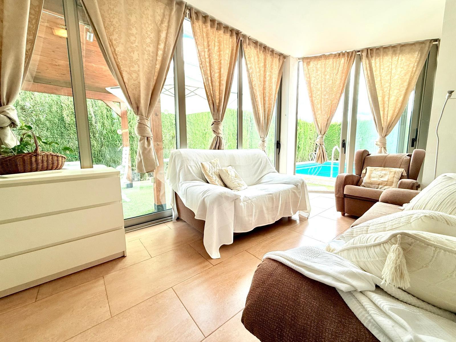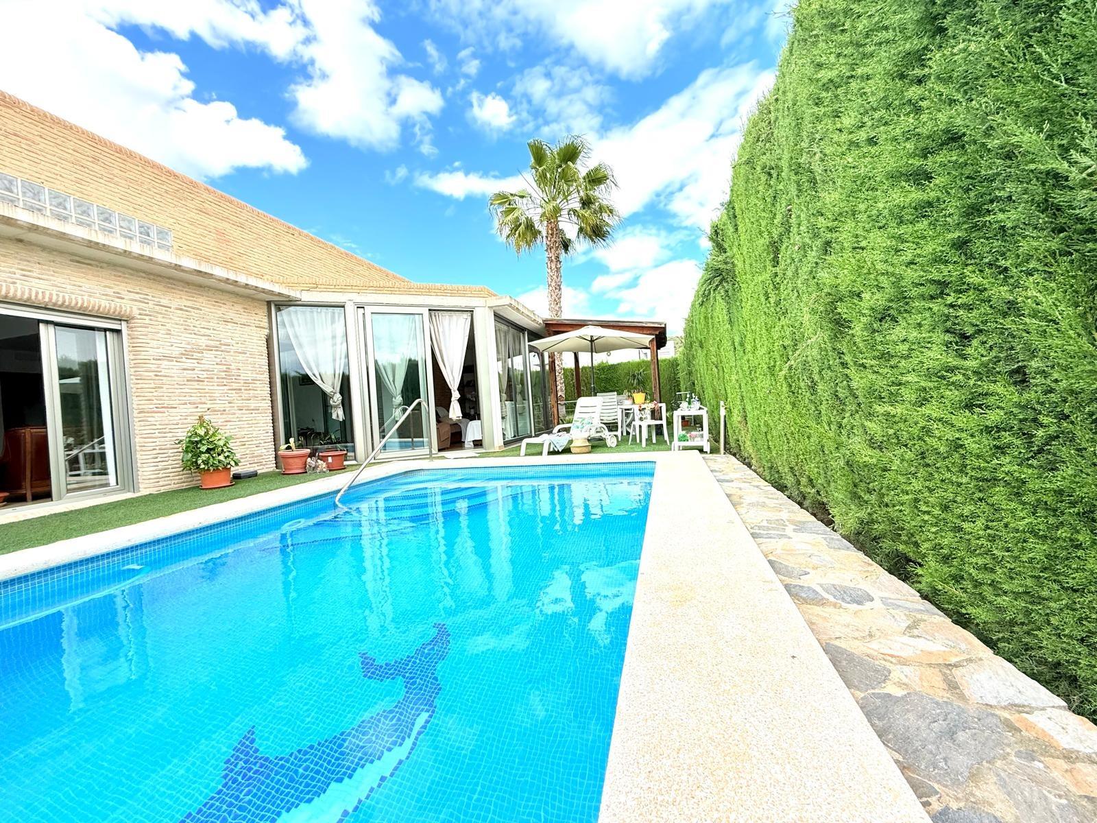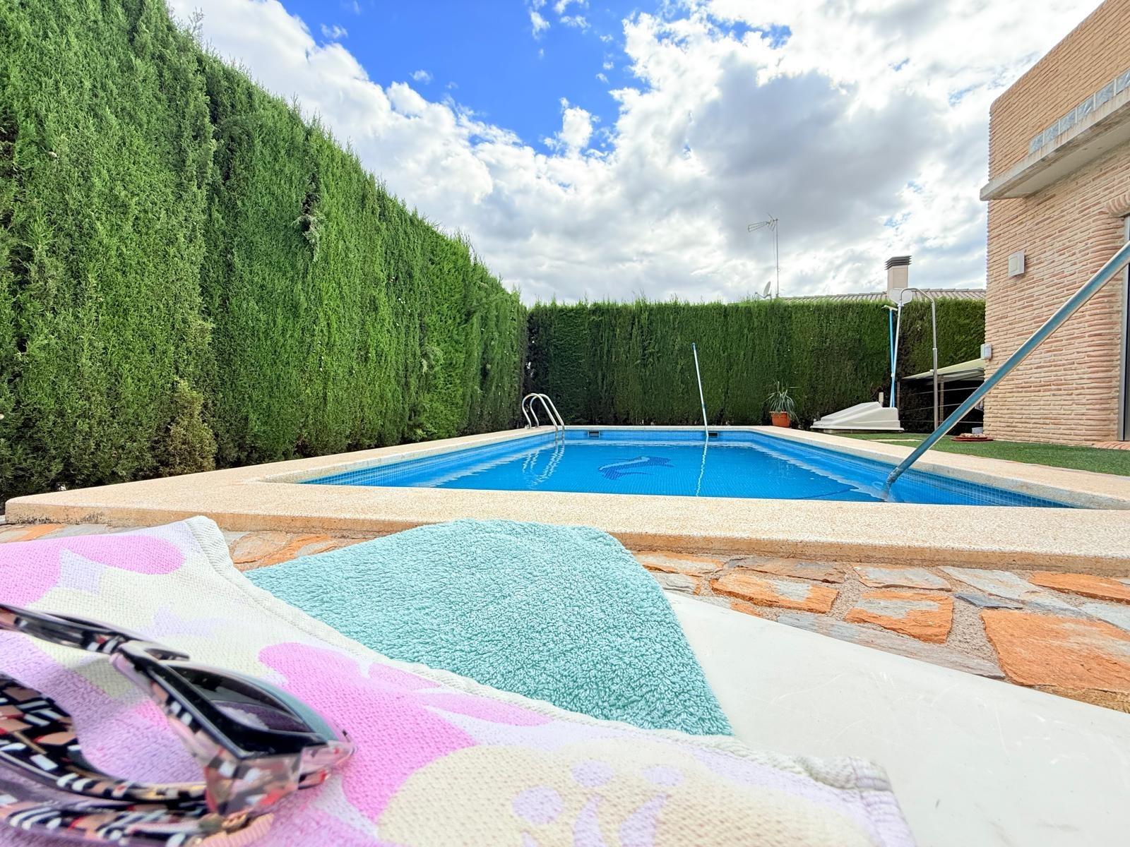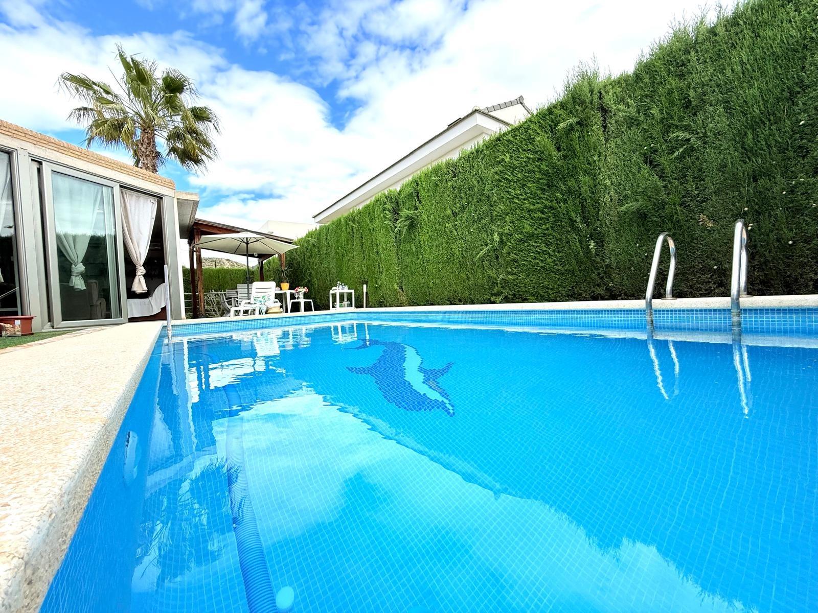 Imagina despertar cada día rodeado de luz, naturaleza y silencio, en una de las urbanizaciones más deseadas de Murcia. Este chalet independiente en La Alcayna, a solo 15 km del centro, es mucho más que una casa: es un estilo de vida.~~Ubicado en una parcela de 600 m², con piscina privada y jardín, este hogar se distribuye en tres cómodas plantas pensadas para disfrutar y vivir con amplitud. ~~En el sótano te espera un salón comedor, un dormitorio con baño en suite perfecto para invitados o familiares, un despacho ideal para teletrabajar con tranquilidad, y dos estancias más que podrás usar como trastero, zona de juegos o dormitorios adicionales.~~La planta principal te recibe con una gran cocina independiente, funcional y luminosa, y un amplio salón con salida directa al jardín y la piscina. Desde aquí se accede a un segundo salón acristalado con vistas al exterior, perfecto como zona de relax, lectura o celebraciones. Además, esta planta cuenta con cuatro dormitorios, dos de ellos con baño en suite, un aseo para invitados y un baño completo adicional que da servicio a los otros dos dormitorios, garantizando así comodidad e intimidad para todos.~~Y para los amantes del sol y el aire libre, la planta superior ofrece una gran terraza, el rincón perfecto para desconectar, tomar el sol o compartir momentos inolvidables al atardecer.~~Con garaje en superficie y ubicada en una urbanización con vigilancia privada, rodeada de colegios, centro de salud, supermercados, farmacia y todo tipo de servicios, esta casa lo tiene todo para convertirse en tu próximo hogar.~~📞 Llámanos y ven a descubrirla. Tu nueva vida empieza aquí.~~En el precio informado no se encuentran incluidos los gastos de compraventa ni honorarios profesionales de la agencia inmobiliaria.~~Por otra parte, tanto la descripción del inmueble como las imágenes tienen mero carácter informativo, en ningún caso contractual. Asimismo, el precio ha sido designado por la propiedad por lo que podría sufrir variaciones y no sería vinculante hasta que se formalice en contrato de compraventa.~~Por mandato expreso del propietario, comercializamos esta propiedad en exclusiva, lo que le garantiza el acceso a toda la información, a un servicio de calidad, un trato fácil, sencillo y sin interferencias de terceros. Por este motivo, se ruega no molestar al propietario, o a los vecinos. Muchas gracias por su comprensión. Si usted es agente inmobiliario y tiene un cliente para este inmueble, llámenos: estaremos encantados de colaborar.~