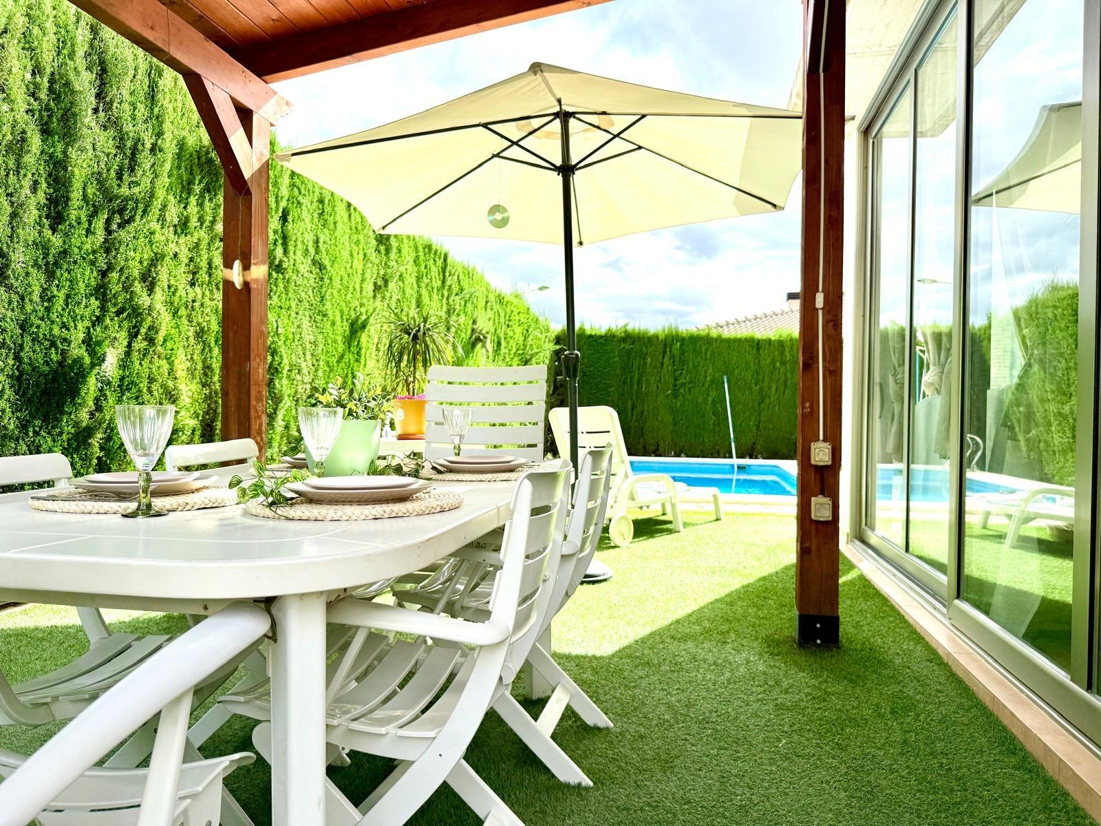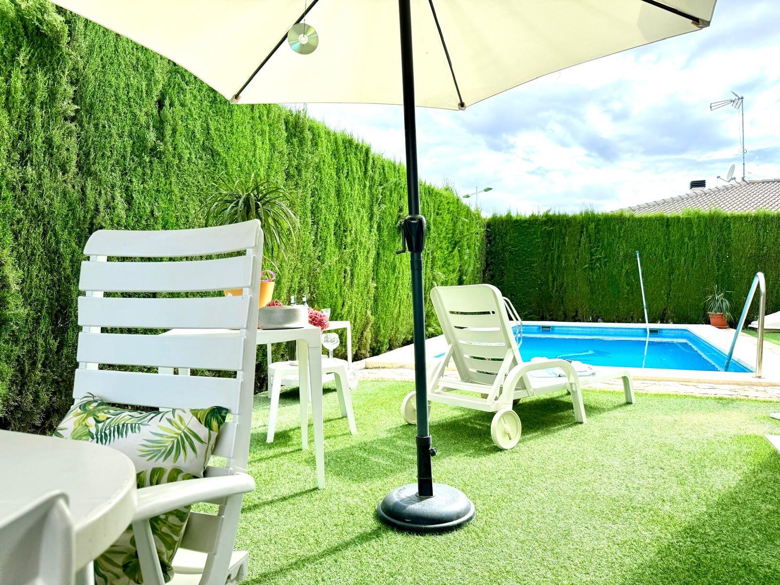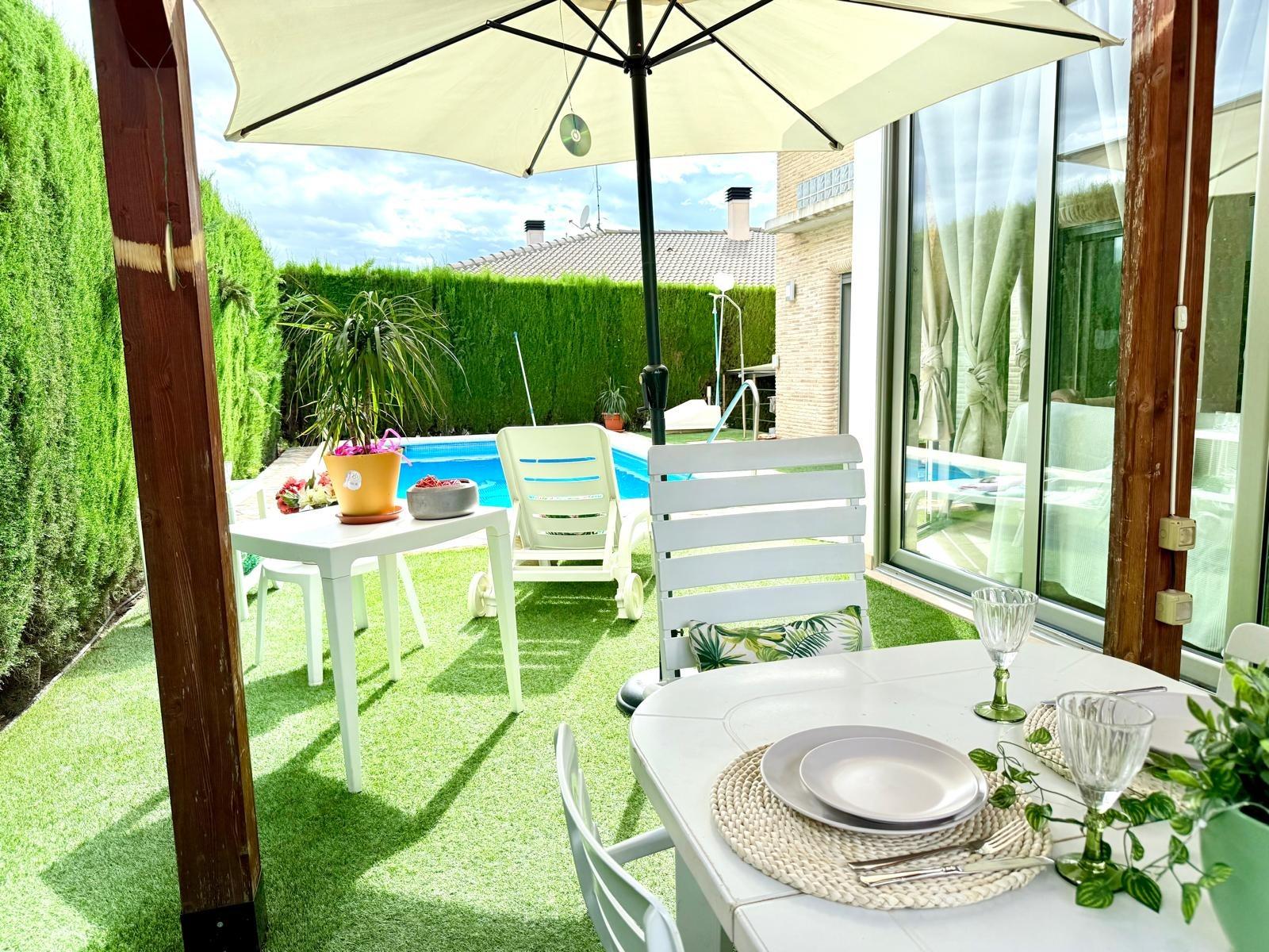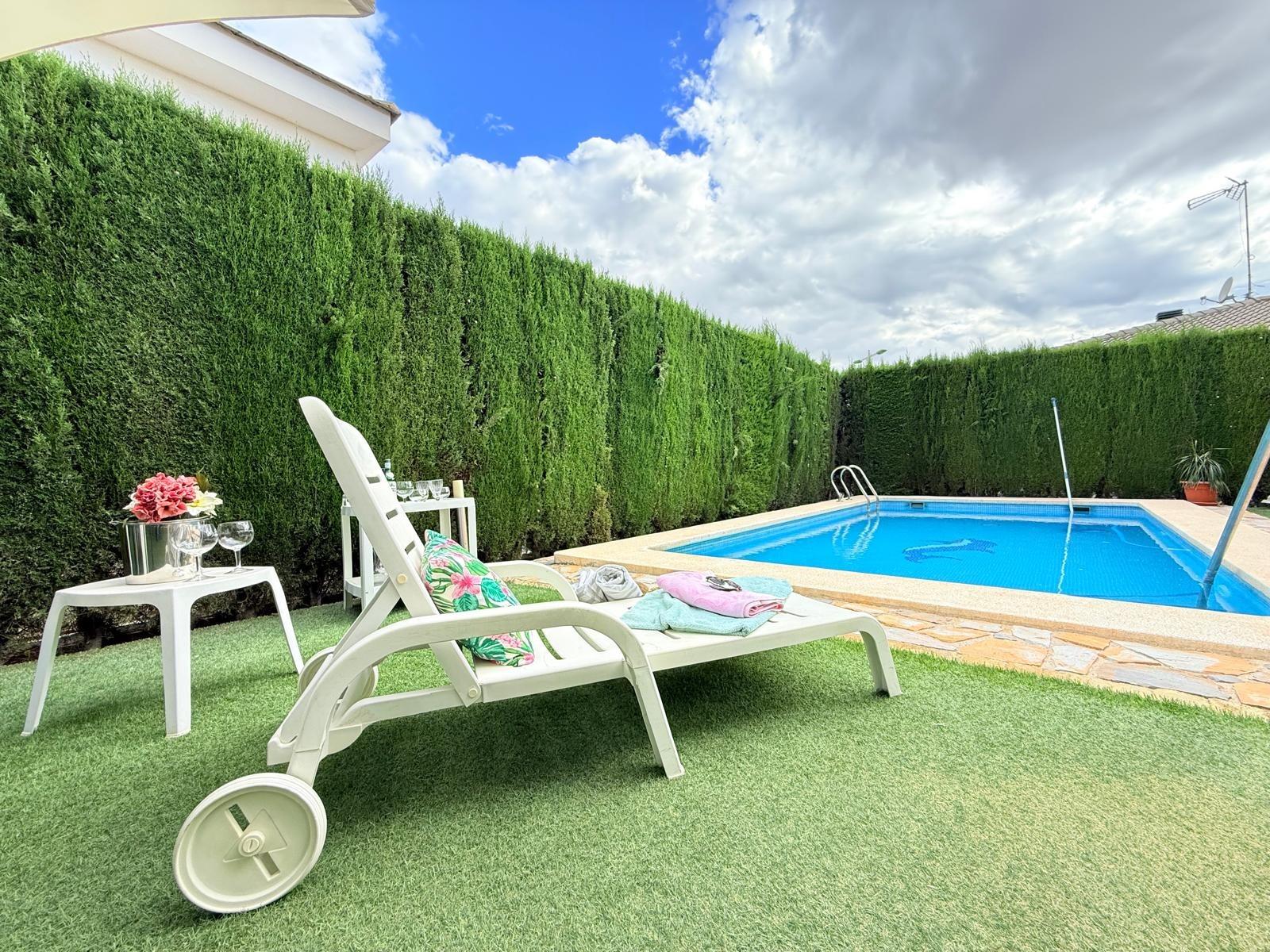 Imagina despertar cada día rodeado de luz, naturaleza y silencio, en una de las urbanizaciones más deseadas de Murcia. Este chalet independiente en La Alcayna, a solo 15 km del centro, es mucho más que una casa: es un estilo de vida.~~Ubicado en una parcela de 600 m², con piscina privada y jardín, este hogar se distribuye en tres cómodas plantas pensadas para disfrutar y vivir con amplitud. ~~En el sótano te espera un salón comedor, un dormitorio con baño en suite perfecto para invitados o familiares, un despacho ideal para teletrabajar con tranquilidad, y dos estancias más que podrás usar como trastero, zona de juegos o dormitorios adicionales.~~La planta principal te recibe con una gran cocina independiente, funcional y luminosa, y un amplio salón con salida directa al jardín y la piscina. Desde aquí se accede a un segundo salón acristalado con vistas al exterior, perfecto como zona de relax, lectura o celebraciones. Además, esta planta cuenta con cuatro dormitorios, dos de ellos con baño en suite, un aseo para invitados y un baño completo adicional que da servicio a los otros dos dormitorios, garantizando así comodidad e intimidad para todos.~~Y para los amantes del sol y el aire libre, la planta superior ofrece una gran terraza, el rincón perfecto para desconectar, tomar el sol o compartir momentos inolvidables al atardecer.~~Con garaje en superficie y ubicada en una urbanización con vigilancia privada, rodeada de colegios, centro de salud, supermercados, farmacia y todo tipo de servicios, esta casa lo tiene todo para convertirse en tu próximo hogar.~~📞 Llámanos y ven a descubrirla. Tu nueva vida empieza aquí.~~En el precio informado no se encuentran incluidos los gastos de compraventa ni honorarios profesionales de la agencia inmobiliaria.~~Por otra parte, tanto la descripción del inmueble como las imágenes tienen mero carácter informativo, en ningún caso contractual. Asimismo, el precio ha sido designado por la propiedad por lo que podría sufrir variaciones y no sería vinculante hasta que se formalice en contrato de compraventa.~~Por mandato expreso del propietario, comercializamos esta propiedad en exclusiva, lo que le garantiza el acceso a toda la información, a un servicio de calidad, un trato fácil, sencillo y sin interferencias de terceros. Por este motivo, se ruega no molestar al propietario, o a los vecinos. Muchas gracias por su comprensión. Si usted es agente inmobiliario y tiene un cliente para este inmueble, llámenos: estaremos encantados de colaborar.~