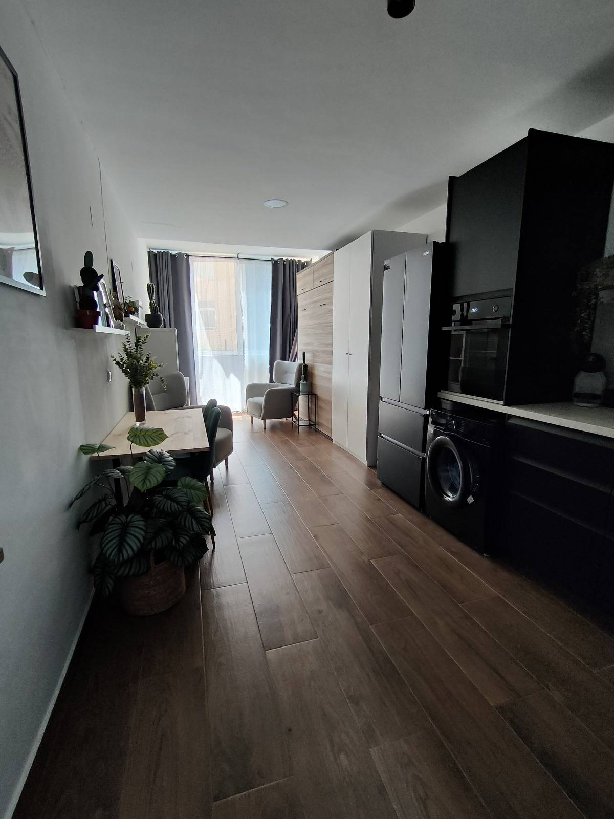 Descubre este elegante estudio reformado a solo 100 metros del mar, en una de las zonas más cotizadas de Torrevieja. Una oportunidad perfecta tanto para disfrutarlo como residencia vacacional como para vivir todo el año en un entorno relajado y privilegiado.~~La vivienda ha sido completamente renovada con materiales de alta calidad y se entrega amueblada y equipada, lista para entrar a vivir sin preocuparse por reformas. Cuenta con una cocina funcional y moderna, una cama abatible de 150×190 con colchón premium, baño con ducha amplia y un diseño interior pensado para aprovechar al máximo el espacio y la luz natural.~~Incluye electrodomésticos de primeras marcas (Haier, Samsung), televisión de 65″, mobiliario de pino natural y espacio de almacenaje adicional. El edificio dispone de parking comunitario con acceso automático, zonas ajardinadas, barbacoa y cenador para disfrutar del aire libre.~~Ideal para quienes buscan un refugio junto al mar, cómodo, moderno y sin complicaciones.~