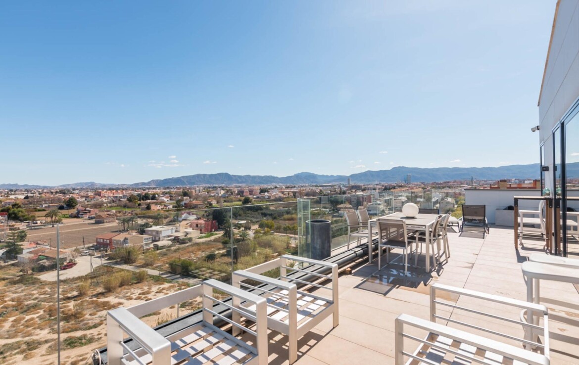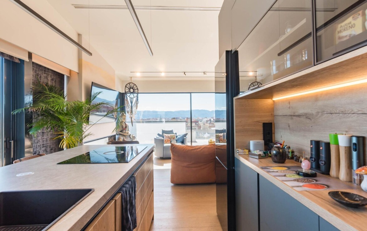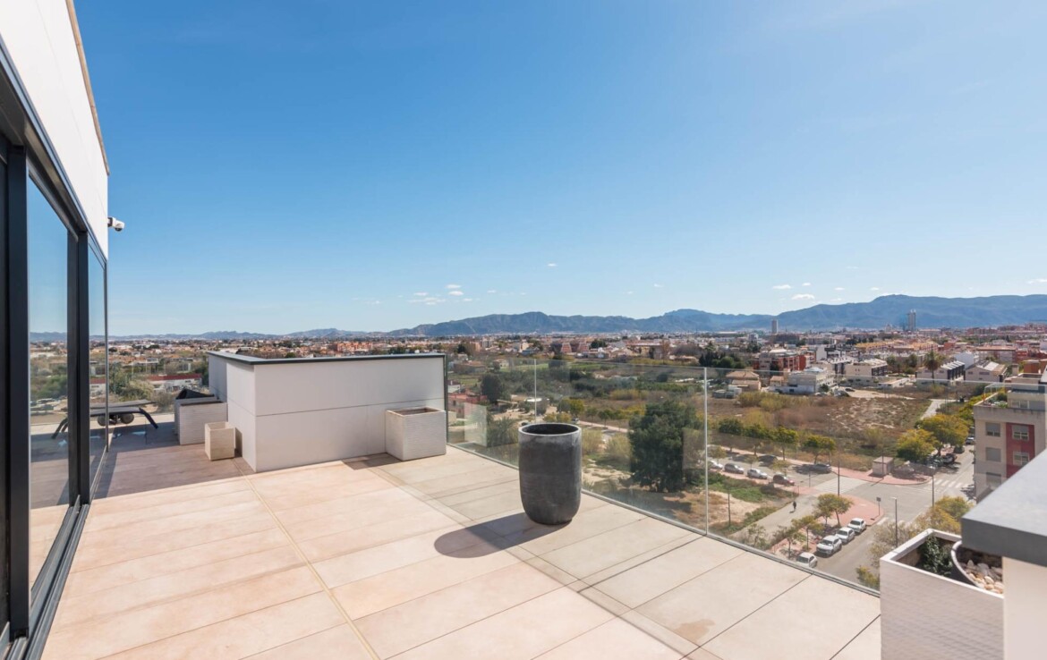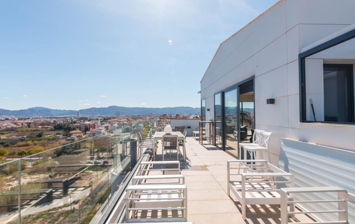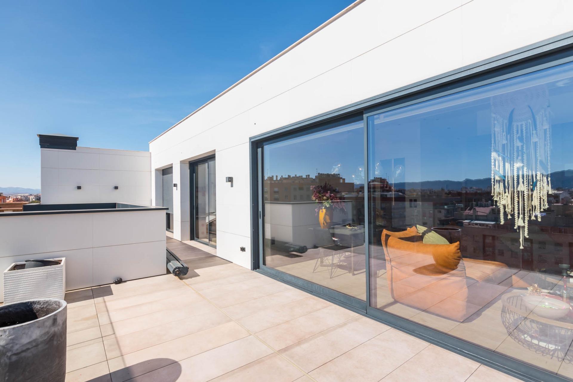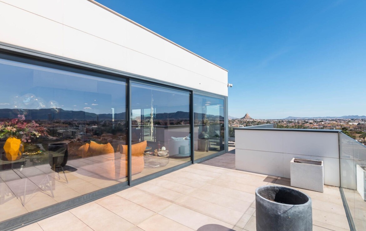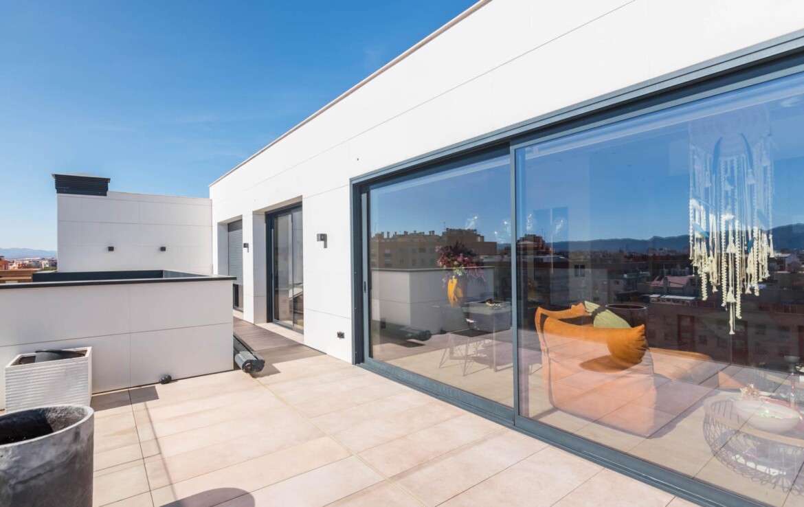 El ático que siempre imaginaste… ahora es real~Hay propiedades que inspiran desde el primer momento. Espacios que no solo se habitan, sino que se viven.~Y este ático, en la zona norte de Murcia, es el ático con el que sueña tu familia.~~En cuanto entras, todo transmite amplitud, elegancia y confort. Un gran espacio abierto conecta cocina, comedor y salón en una distribución pensada para disfrutar. La cocina, con una isla central, invita a compartir momentos mientras cocinas, charlas o simplemente observas cómo entra la luz por los ventanales. A un lado, la zona de lavandería, tan práctica como discreta.~~El salón, con su cálida chimenea y su gran sofá, se convierte en el corazón de la casa en las tardes de invierno. Frente a él, una mesa para ocho comensales donde celebrar desde cenas íntimas hasta encuentros memorables. Y como guiño a los verdaderos sibaritas, dos elegantes cavas para conservar tus vinos en perfectas condiciones.~~La zona de descanso mantiene ese mismo nivel de detalle. El dormitorio principal cuenta con baño en suite, una ducha espaciosa y una zona de vestidor con puertas de cristal que aportan un toque moderno y sofisticado. El segundo dormitorio, de 14 m², es versátil: ideal como habitación infantil, despacho o cuarto de invitados.~~Pero si algo define esta vivienda, es su impresionante terraza de casi 100 m² que rodea la casa. Aquí, cada amanecer y cada atardecer se convierten en un espectáculo privado con vistas a la huerta de Murcia, la sierra de Carrascoy y hasta el Cristo de Monteagudo.~~¿Necesitas más espacio? En la planta inferior encontrarás un estudio totalmente independiente con cocina, zona de estar, baño y espacio para cama de matrimonio. Ideal como apartamento para invitados, zona de trabajo o incluso como lugar para el relax más absoluto.~~Detalles que marcan la diferencia:~~Calefacción por suelo radiante con caldera de gas natural~~Aire acondicionado por zonas, para un confort a medida~~Cortinas y persianas domotizadas~~Materiales Porcelanosa en todos los acabados~~Todo ello ubicado junto a la emblemática Plaza Bandera Paracaidista Ortiz de Zárate, con una orientación inmejorable al Norte, Levante y Sur. Una combinación perfecta de luz, vistas y privacidad.~~📍 Datos prácticos~Comunidad: 125 €/mes~~IBI: 865 €/año~~🤝 Exclusividad y trato personalizado~Por expreso deseo de la propiedad, esta vivienda se comercializa en exclusiva. Nuestro equipo le ofrecerá un servicio totalmente personalizado y discreto, como merece una propiedad de estas características. Le rogamos que no contacte directamente con los propietarios, ocupantes o vecinos.~~¿Eres profesional inmobiliario y tienes un cliente interesado? Llámanos. Estaremos encantados de colaborar.~~»Impuestos, gastos de compraventa, honorarios de la agencia y financiación no incluidos en el precio.~