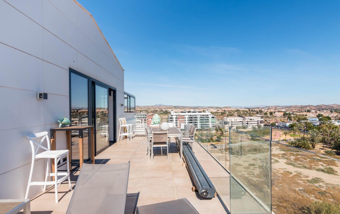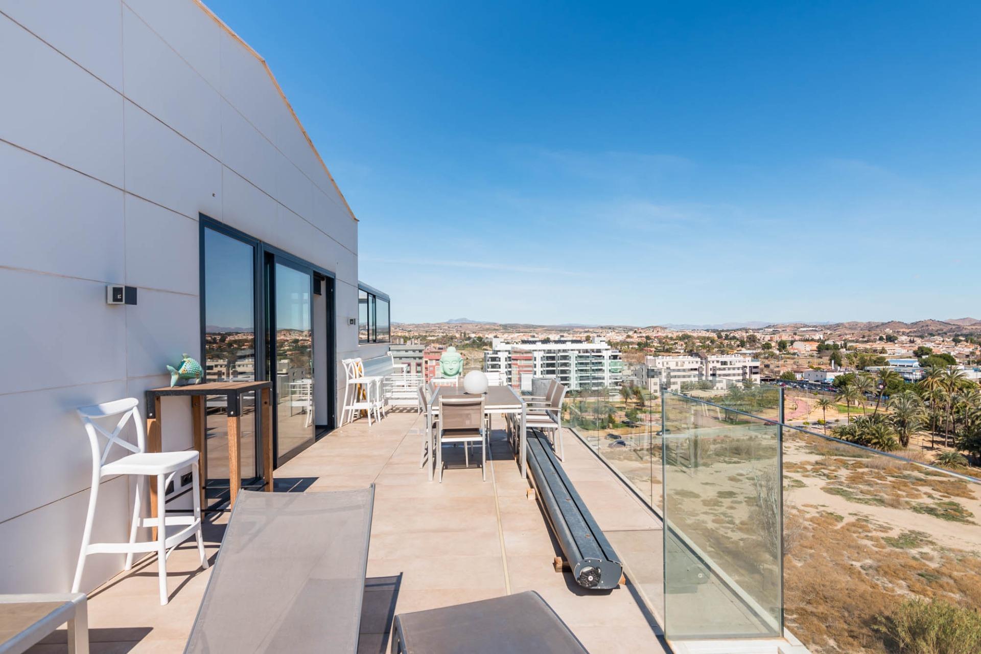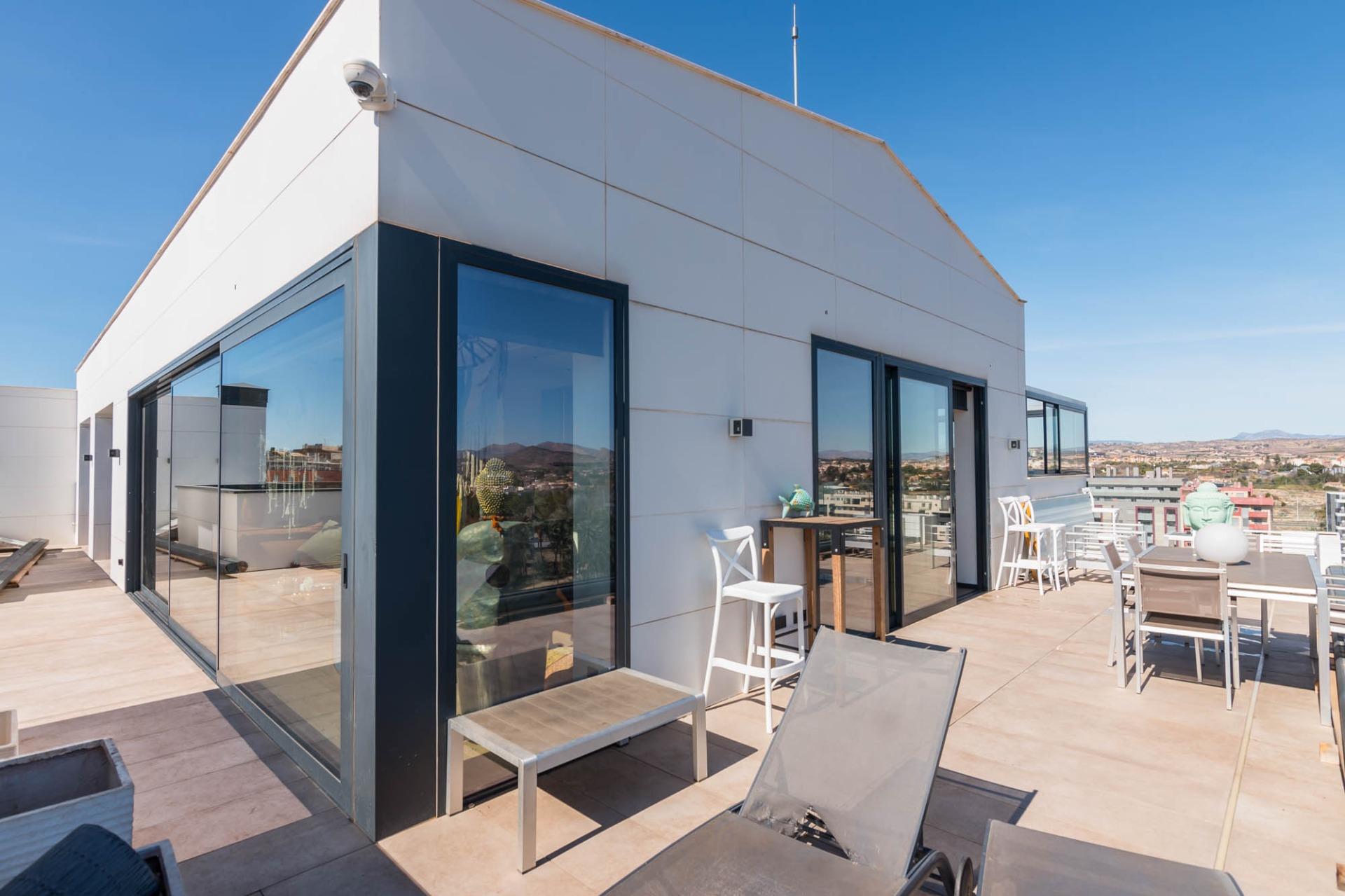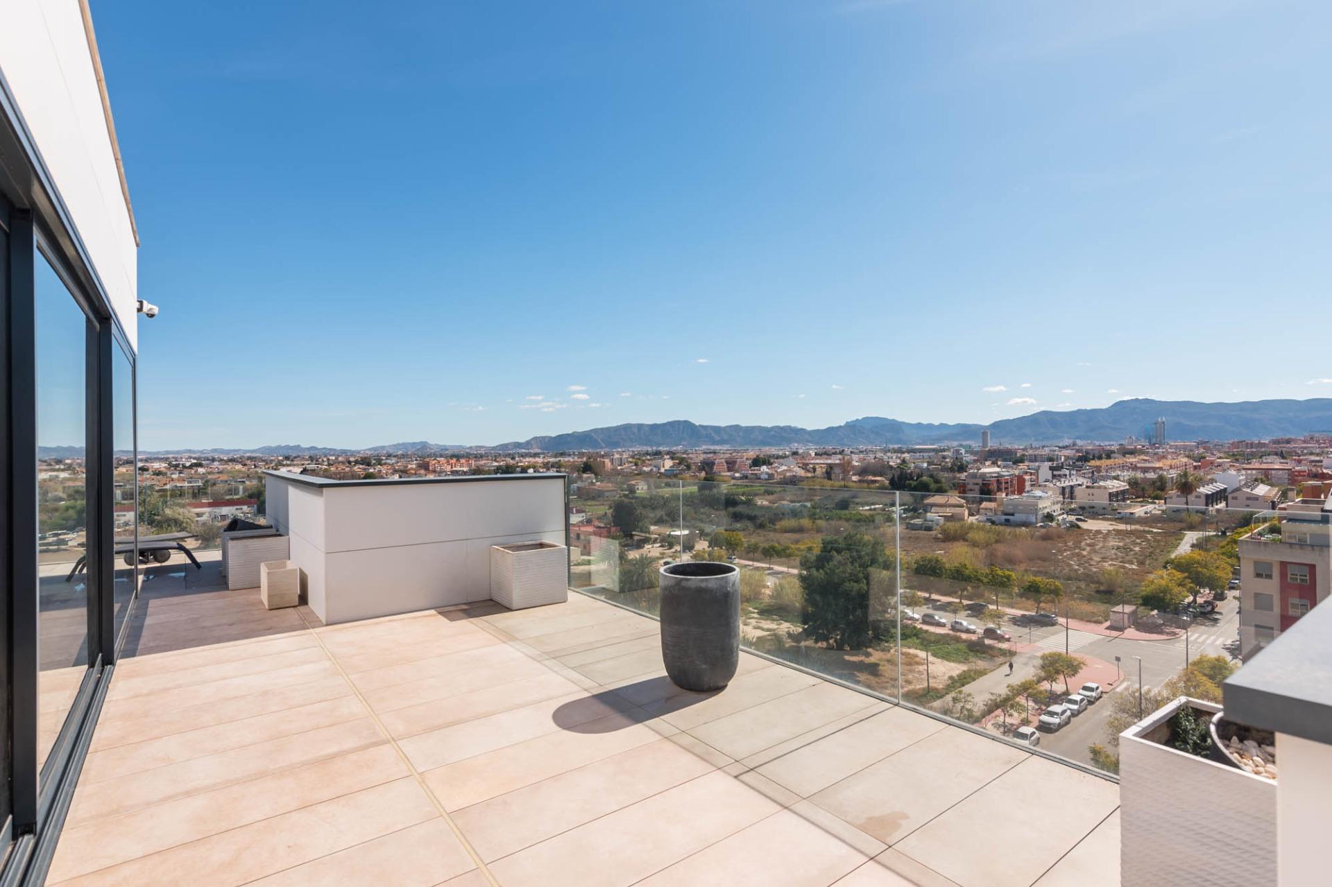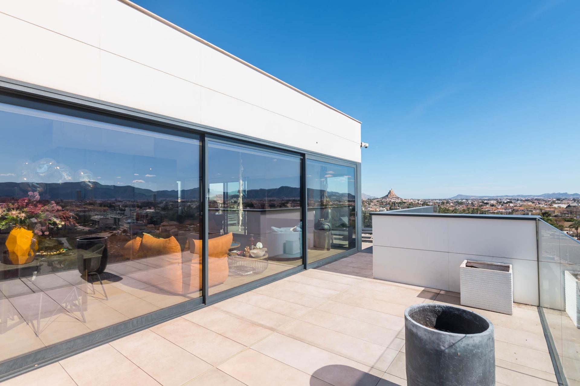 El ático que siempre imaginaste… ahora es real~Hay propiedades que inspiran desde el primer momento. Espacios que no solo se habitan, sino que se viven.~Y este ático, en la zona norte de Murcia, es el ático con el que sueña tu familia.~~En cuanto entras, todo transmite amplitud, elegancia y confort. Un gran espacio abierto conecta cocina, comedor y salón en una distribución pensada para disfrutar. La cocina, con una isla central, invita a compartir momentos mientras cocinas, charlas o simplemente observas cómo entra la luz por los ventanales. A un lado, la zona de lavandería, tan práctica como discreta.~~El salón, con su cálida chimenea y su gran sofá, se convierte en el corazón de la casa en las tardes de invierno. Frente a él, una mesa para ocho comensales donde celebrar desde cenas íntimas hasta encuentros memorables. Y como guiño a los verdaderos sibaritas, dos elegantes cavas para conservar tus vinos en perfectas condiciones.~~La zona de descanso mantiene ese mismo nivel de detalle. El dormitorio principal cuenta con baño en suite, una ducha espaciosa y una zona de vestidor con puertas de cristal que aportan un toque moderno y sofisticado. El segundo dormitorio, de 14 m², es versátil: ideal como habitación infantil, despacho o cuarto de invitados.~~Pero si algo define esta vivienda, es su impresionante terraza de casi 100 m² que rodea la casa. Aquí, cada amanecer y cada atardecer se convierten en un espectáculo privado con vistas a la huerta de Murcia, la sierra de Carrascoy y hasta el Cristo de Monteagudo.~~¿Necesitas más espacio? En la planta inferior encontrarás un estudio totalmente independiente con cocina, zona de estar, baño y espacio para cama de matrimonio. Ideal como apartamento para invitados, zona de trabajo o incluso como lugar para el relax más absoluto.~~Detalles que marcan la diferencia:~~Calefacción por suelo radiante con caldera de gas natural~~Aire acondicionado por zonas, para un confort a medida~~Cortinas y persianas domotizadas~~Materiales Porcelanosa en todos los acabados~~Todo ello ubicado junto a la emblemática Plaza Bandera Paracaidista Ortiz de Zárate, con una orientación inmejorable al Norte, Levante y Sur. Una combinación perfecta de luz, vistas y privacidad.~~📍 Datos prácticos~Comunidad: 125 €/mes~~IBI: 865 €/año~~🤝 Exclusividad y trato personalizado~Por expreso deseo de la propiedad, esta vivienda se comercializa en exclusiva. Nuestro equipo le ofrecerá un servicio totalmente personalizado y discreto, como merece una propiedad de estas características. Le rogamos que no contacte directamente con los propietarios, ocupantes o vecinos.~~¿Eres profesional inmobiliario y tienes un cliente interesado? Llámanos. Estaremos encantados de colaborar.~~»Impuestos, gastos de compraventa, honorarios de la agencia y financiación no incluidos en el precio.~