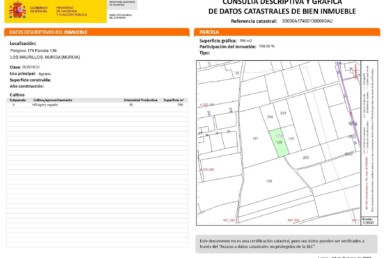 ¡FINANCIAMOS CASI EL 100%!~Ubicada en la población de Beniel, en la huerta de Murcia nos encontramos esta parcela rustica, con una superficie de 2973 metros. Tiene todos los servicios . Murcia capital a tan sólo 30 minutos.~VEN Y DESCUBRE TU MISMO LA ZONA.~~¿Necesitas FINANCIACIÓN? – Varias familias de la zona ya han conseguido financiar su vivienda gracias a nuestra gestión. Si la hipoteca es para ti un inconveniente, no dudes en contactarnos, ¡podemos ayudarte!~~ A este TERRENO solo le falta su nuev@ dueñ@ , ¿Te animas?~~ ¡ ABRIMOS LAS PUERTAS DE TU TEMPLO !~ ~ Queremos informarle que los gastos de compraventa y honorarios de la agencia NO VAN INCLUIDOS en el precio. Para su tranquilidad, si desconociera este tipo de gastos no debe preocuparse, nuestro equipo se encargara de asesorarle y guiarle en cada uno de sus pasos.~ ~ Por expreso deseo del propietario , este TERRENO lo comercializamos en exclusiva .Nuestro asesores le facilitaran toda la información que precise , por lo que le rogamos no moleste al propietario o a los vecinos. Y si usted es una agencia inmobiliaria y tiene un cliente interesado , póngase en contacto con nosotros y estaremos encantados de colaborar.~~~I~~