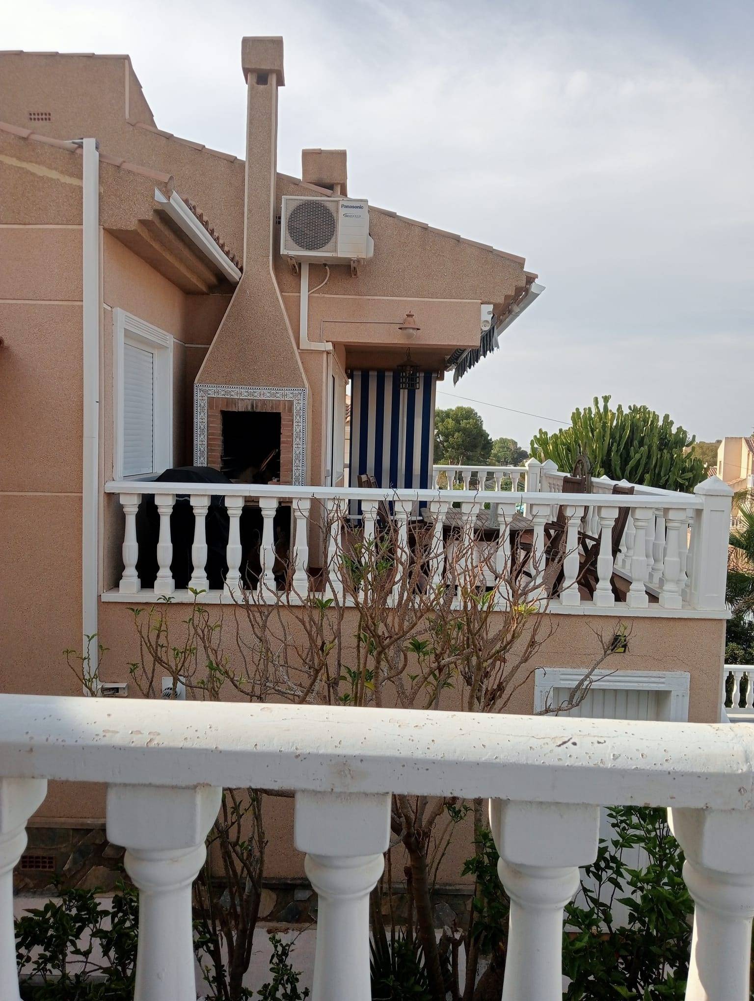 Se vende chalet con piscina privada en Los Balcones, formado por dos plantas, la primera con dos habitaciones, baño, salón, cocina, la planta baja con una habitación, oficina. Tienen piscina privada, garaje para 2 coches, solárium, terraza, trastero, muebles, aire acondicionado, energía solar.~Esta situada en Los Balcones, Los Balcones es una zona residencial de Orihuela Costa que combina tranquilidad y conveniencia. Está situada cerca de la Laguna Rosa, un área natural protegida, y ofrece vistas espectaculares tanto al mar como a la campiña. La zona cuenta con una mezcla de viviendas, desde apartamentos hasta chalets, y tiene buena conexión a través de carreteras principales, lo que facilita el acceso a servicios como supermercados, restaurantes, y centros médicos. Además, está a pocos minutos de las playas de Orihuela Costa y del campo de golf. Es un lugar perfecto para quienes buscan un entorno relajado, pero con todas las comodidades a mano.~~~~