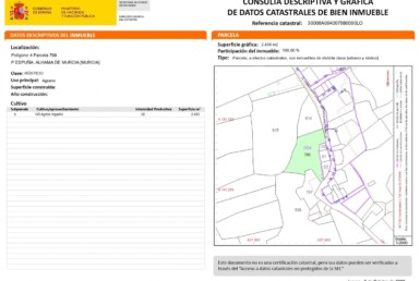TERRENO con BALSA en Las CHinchillanas – FORTUNA (MURCIA)~ ~ ~ Terreno agrícola (TIERRA EN BLANCO) con balsa para riego, caseta con motor para riego por goteo y 9 acciones de agua incluidas en el precio.~ ~ Por mandato expreso del propietario, comercializamos esta propiedad en gestión integral de su venta, lo que le garantiza el acceso a toda la información, a un servicio de calidad, un trato fácil, sencillo y sin interferencias de terceros. Si usted es agente inmobiliario y tiene un cliente para este inmueble, llámenos, estaremos encantados de colaborar.~
