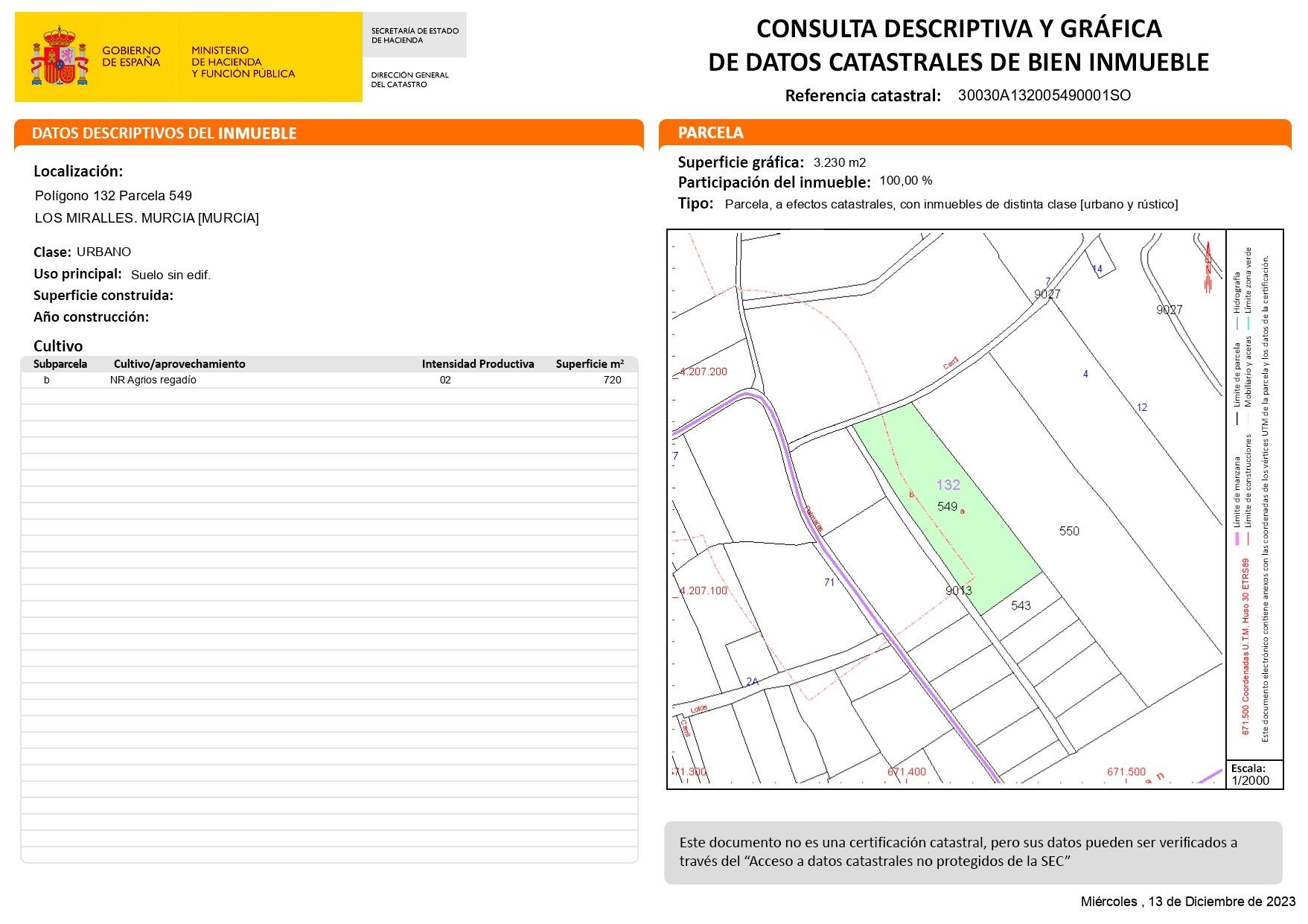 Se vende terreno urbanizable de 3200 m2 cerca de la Vereda del Chocolate.~~Posibilidad de agua y luz.~~Zona muy tranquila en plena huerta.~~Para cualquier información no dude en ponerse en contacto con nosotros~~Los gastos de compra venta y honorarios de agencia no están incluidos en el precio de venta.~~